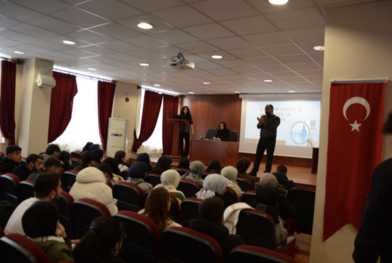İş Arama ve Bulma Yöntemleri konulu konferans 200 öğrencinin katılımı ile Dr. Öğr. Üyesi Zeliha KOCA'nın moderatörlüğünde Dr. Öğr. Üyesi Semiha KILIÇASLAN tarafından gerçekleştirildi.